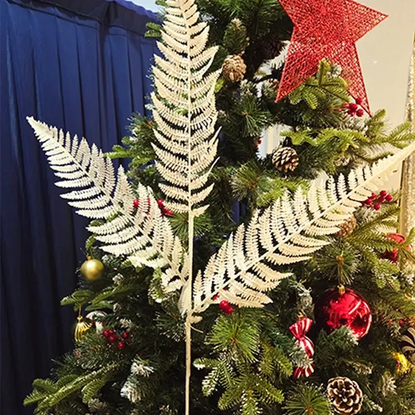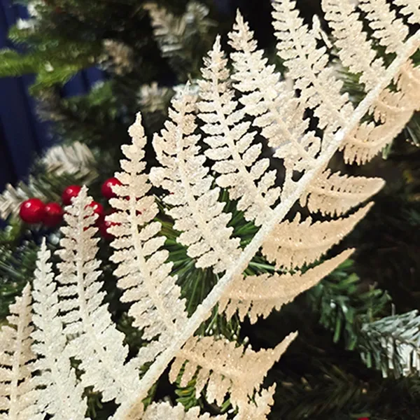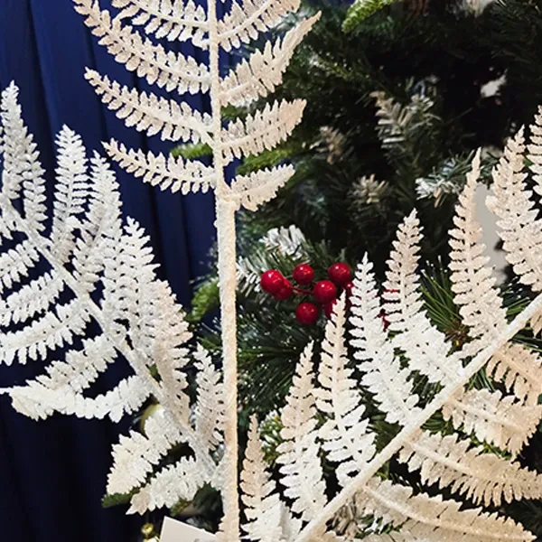Beyaz simli yaprakları sayesinde bu yapay dal, yılbaşı dekorlarınıza hem sofistike hem de uzun ömürlü bir parlaklık kazandırır. Büyük veya küçük alanlarda rahatlıkla kullanılabilir.