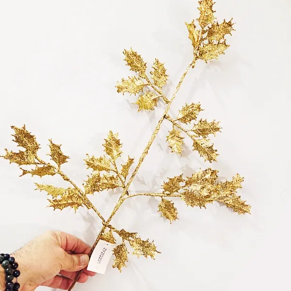 Yılbaşı Gold Simli Yapay Dal Yoğun Yapraklı (70 cm - 1 Adet)